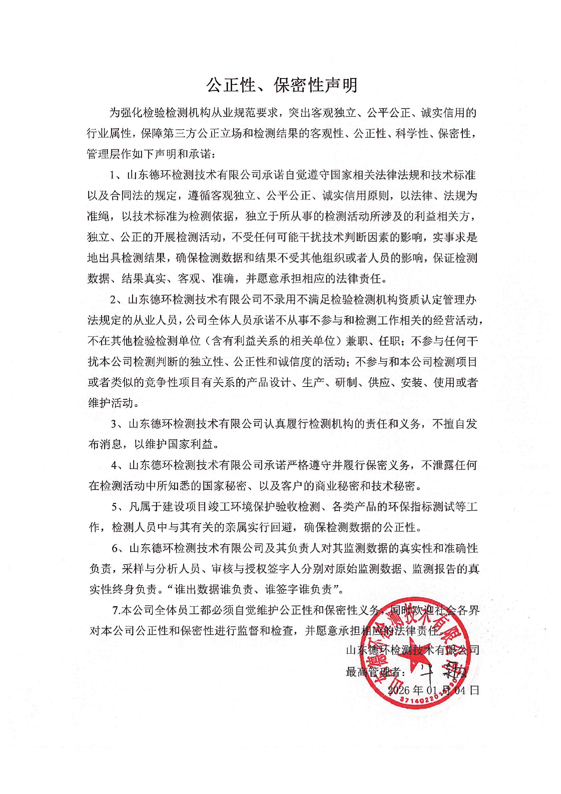 山東德環(huán)檢測技術(shù)有限公司公正性、保密性聲明
